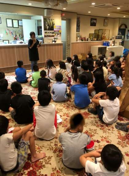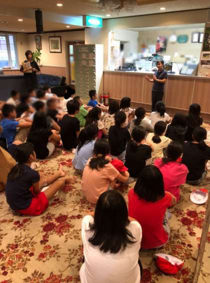 雨が降っているので、朝のつどいを宿舎で行いました。