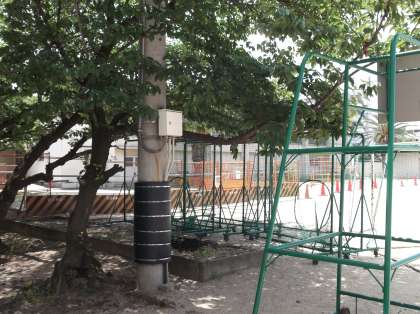 7月1日〜8月31日の月〜土に天井改修工事が行われます。フェンスでバリケードをし、工事車両の通行のためのコースも設けています。トラックの出入りがありますが、警備員の誘導もあり、休み時間の通行はしないようにすることで、安全に配慮しています。