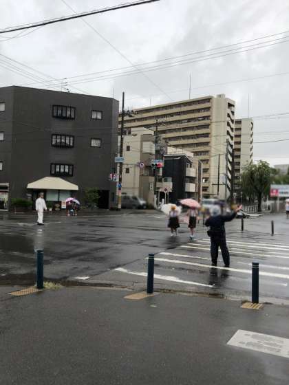 今日の朝も、北恩加島小学校西の交差点で、大正警察の方が、警備をしてくださいました。