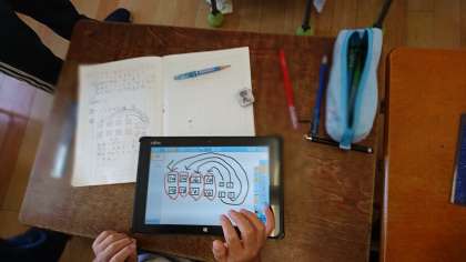 1学期にも筆算のわり算の学習をしています。今までの学習を活用して、どうやったら計算できるのか、みんなで考えました。タブレット端末を使って、みんなの意見を聞きました。
