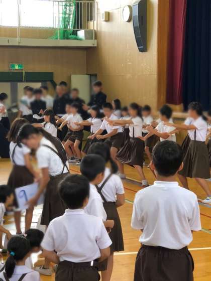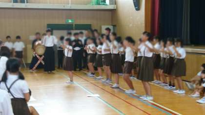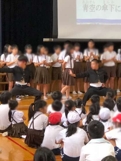 児童集会 泉尾工業高等学校の応援団の生徒と交流