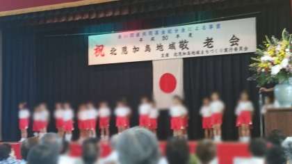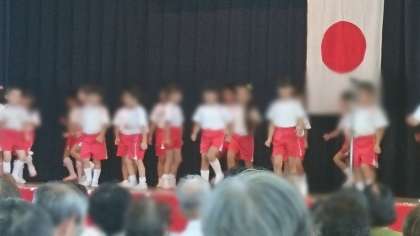 北恩加島幼稚園の年長組のこどもたちも演技をしました。かわいい歌も体操で、会場の雰囲気が和みました。