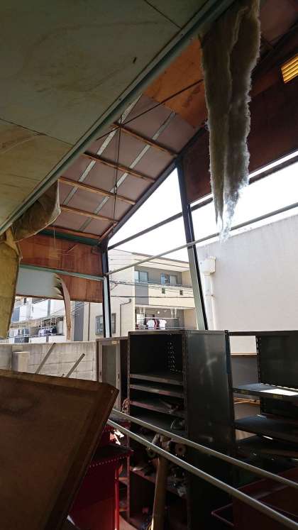 雨も降ってないのに、一部の屋根に溜まっていた雨水が天井からずっとポタポタ落ちていました。