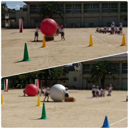 写真は、2年生の競技練習です。ルールを守って競技をするよう、声をかけあって練習しています。