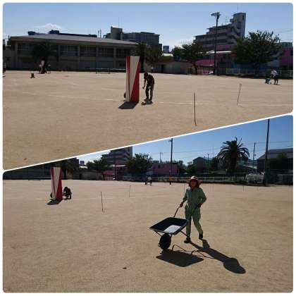 テントを出したり、入退場門を出したり、グランドの整備をしたり…用意をしていましたが…