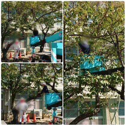 9月から、学校の南側の道路沿いの木々の伐採・撤去の工事をしておられる公営の方々に協力お願いしました。