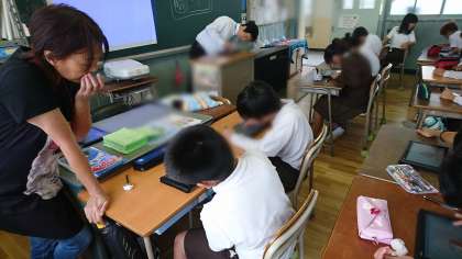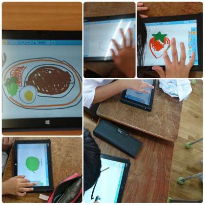 今日は、ICT支援員の先生とホワイトボードを使って、自分の好きなものや理由を書いて、かいたことを発表し合いました。
