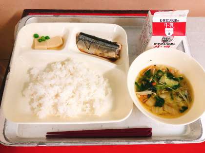 【さんまのさんしょう焼き、すまし汁、高野どうふの煮もの、ごはん、牛乳】