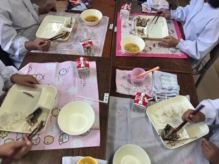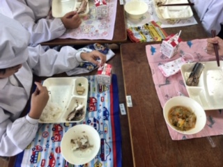 今日の給食に、季節の魚「さんま」がでました。骨を取り除きながらがんばって食べました。