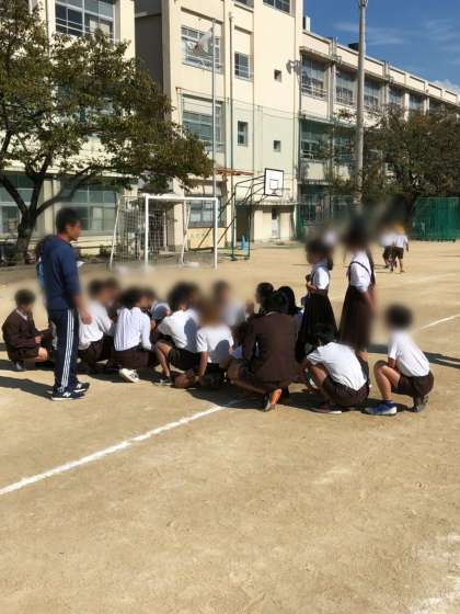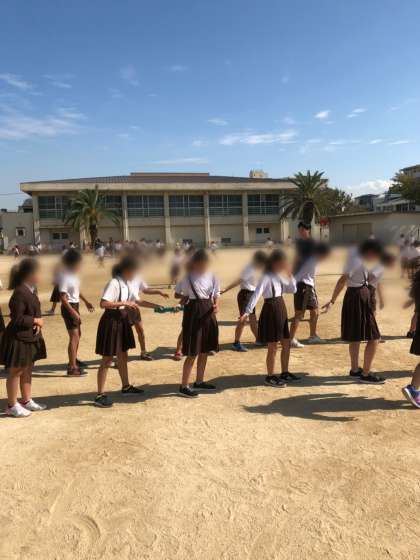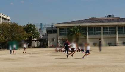 今日の昼休み、区民まつりのリレーに参加する高学年の児童が集まって、練習をしました。