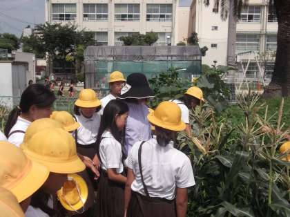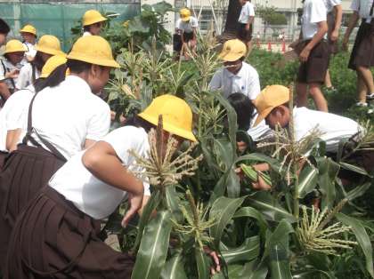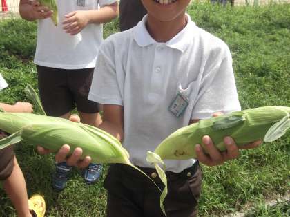 7月15日(火) 昨日お伝えしました、トウモロコシを収穫しました。かなり大きくて立派なトウモロコシに子どもたちも驚いていました。