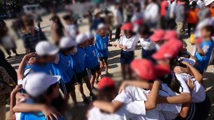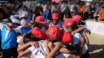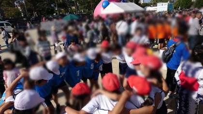 リレーが始まる前、みんなで円陣を組んで、気合いをいれました。