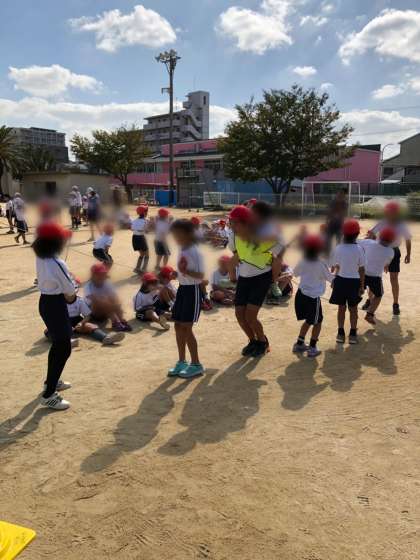 跳ぶのが苦手な低学年の子を高学年の子がおんぶして跳んでいるチームもありました。
