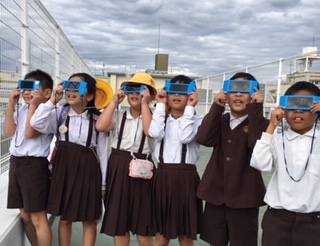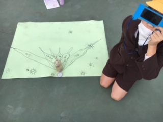 休み時間ごとに、屋上に行き、影のでき方を調べました。