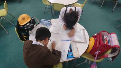 今日は、3年生と4年生が、学びサポートの先生と一緒に放課後学習を行う時間です。