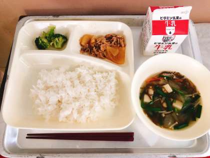 今日の給食は、平成29年度学校給食献立コンクール最優秀賞作品です。児童が考えた献立のねらいは「韓国・朝鮮料理風にアレンジしました。他の国の食について考えるきっかけになればと思います。」だそうです。