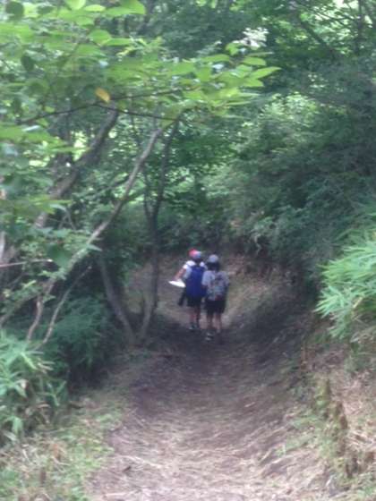 林の中を。きつい山の斜面を。グループで協力してどんどん歩いていきます。