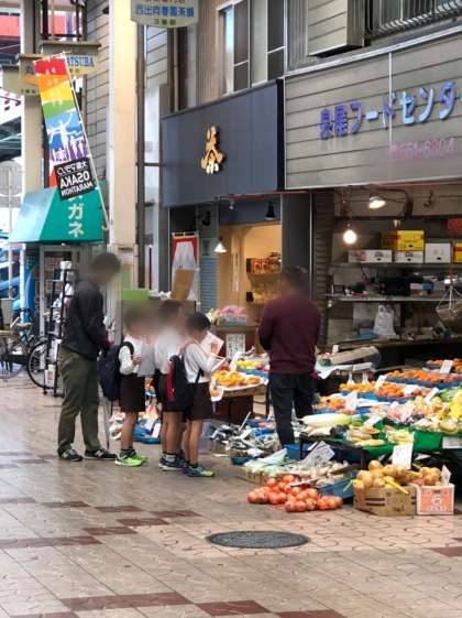 グループにわかれ、お店の人にインタビューをしました。