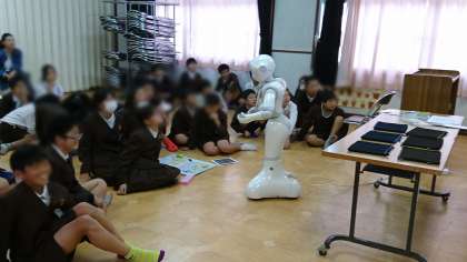 6年生は、ペッパーくんを話ながらエアギターをさせたり、手を振らせたりと複数の動きをさせていました。