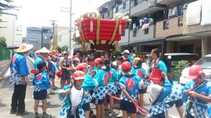 7月23日(水)、地域の夏祭りに参加した子どもたちが、みこしや山車と一緒に町を練り歩きました。学校の正門前に止まって太鼓を打ち鳴らしてくれました。暑い中、ご苦労様でした。