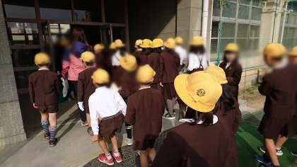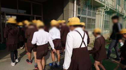 クリーン大阪の活動で、各公園へ学年ごとに出発しました。
