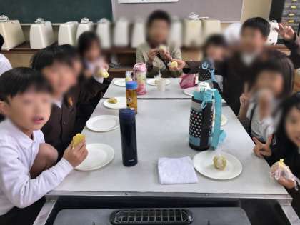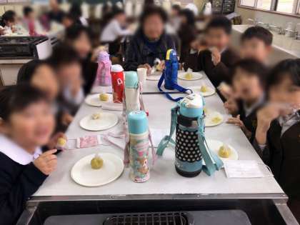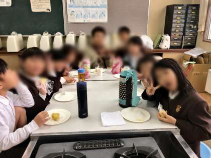 いもを育てるときに、サポートをしていただいたグリーンサポート隊のかたを招待して、作ったいもを一緒に試食しました。