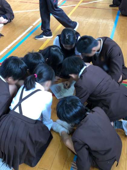 ヒントから、先生の名前を当てるクイズです。みんなで答えを出し合いました。