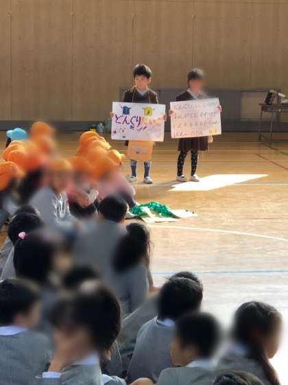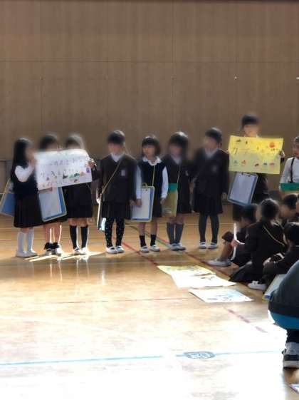 今日は、北恩加島幼稚園、北恩加島保育所の年長の子どもたちを招待して、1年生と交流をしました。