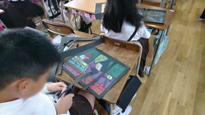 版画の一部に扉をつけています。これをつけることで、作品の見えかたが、また変わってきます。