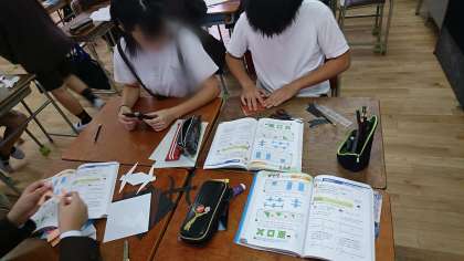 教科書と同じ形になるように、じっくりと教科書を見て、カットをしています。