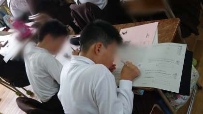 昨年度までの経年調査のプリントを活用して、学習の確認をしています。