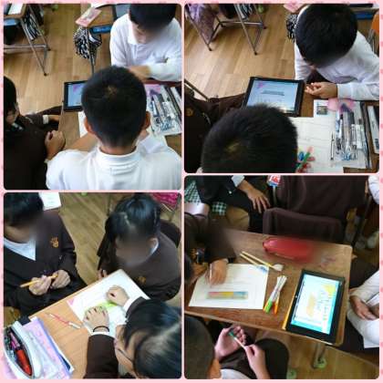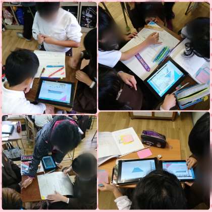 前時で求めた方法(今までに習った図形の公式の使った求め方)をもとに、台形の面積を考えました。