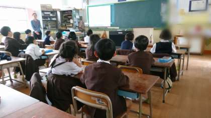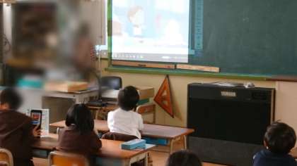 掃除のあとの時間に、ビデオをみながら、英語を楽しんでいます。