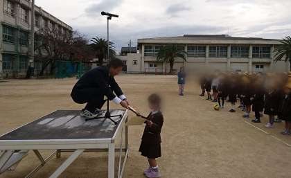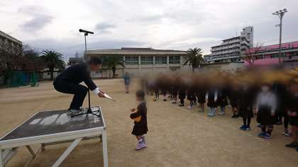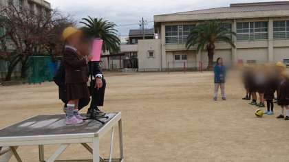 今日の児童朝会では、読書感想文コンクールで、入賞した1年生の児童がみんなの前で、表彰されました。