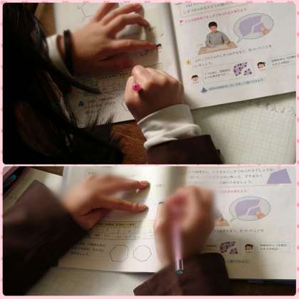 多角形で、3角形の数とひとつの数の角度と気づいたことをまとめてかいていきました。