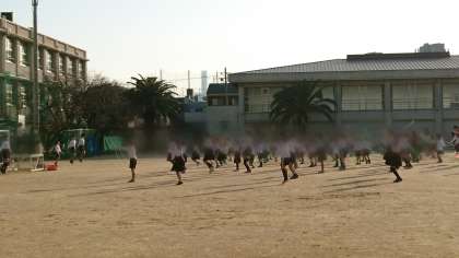 先週の水曜日、朝まで雨が降っていたため、延期になっていた1・3・5年の耐寒なわとびを朝の時間に行いました。