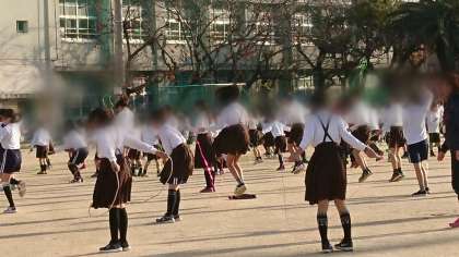 運動委員のリードのもと、リズムに合わせて跳んでいました。