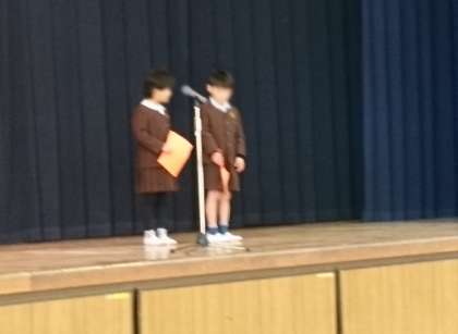 まずは、2年生の児童が、今までを振り返って、これからがんばることを発表しました。