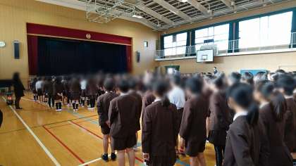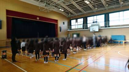 1年から6年までの全児童が揃っての校歌の合唱は、今日の始業式が最後となりました。