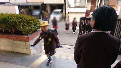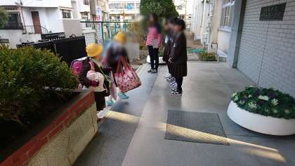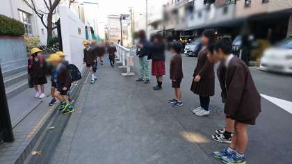 代表委員の児童が、挨拶運動をしています。