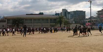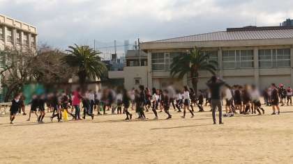 15分の休み時間に、大なわとびを学級ごとに行いました。