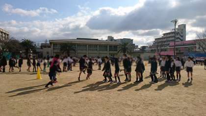 前回よりも、縄を回すスピードが上がっています。高学年は、息をつくときもないほど、縄に向かって走り続けていました。