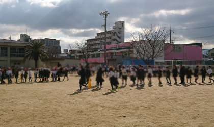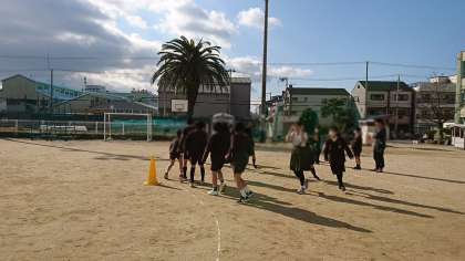 時間が終了すると、運動委員会の児童が、整理体操を前で行い、教室への誘導をしました。