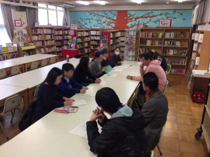 子どもたちが帰ったあとの放課後、大正北中学校下の3校(大正北中学校、泉尾東小学校、北恩加島小学校)の教員が集まって、連絡会をしました。