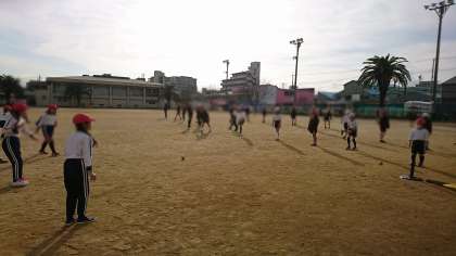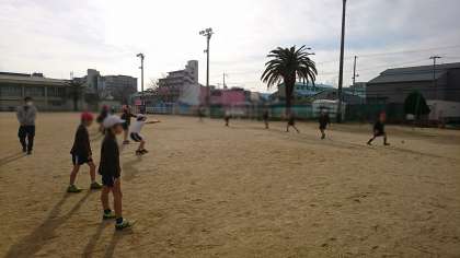4年生は、キャッチボールから始めました。