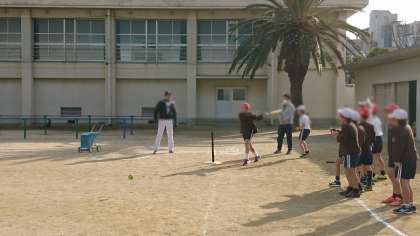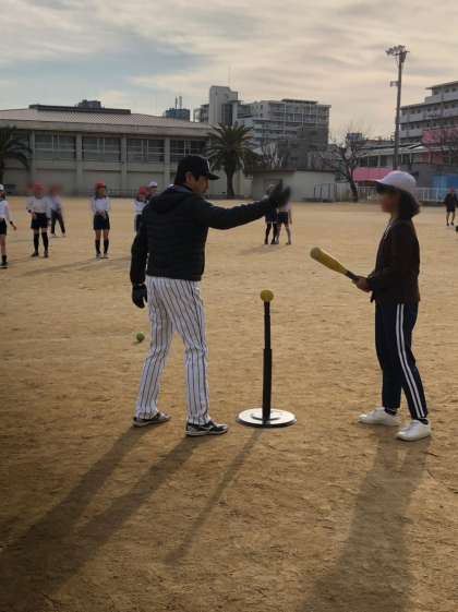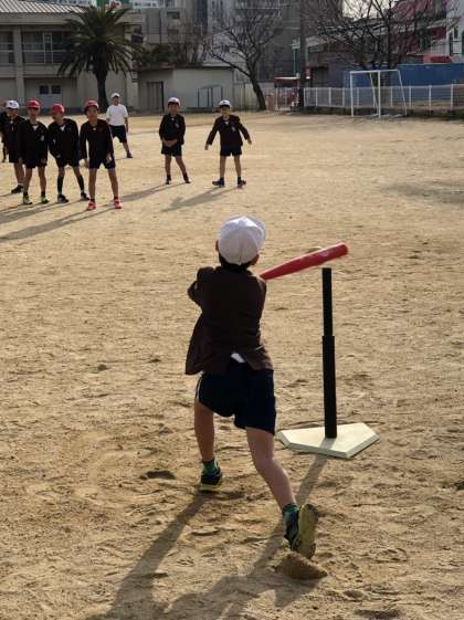 バットの振り方、走り方について、教えていただき、ゲームをしました。