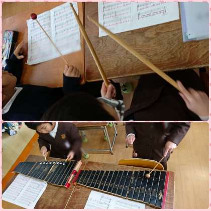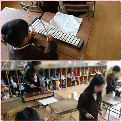 音楽科では、合奏の練習をしています。