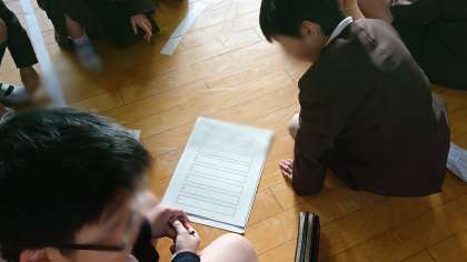今日は、曲あてゲームでした。グループのみんなで、考えて答えを出しました。