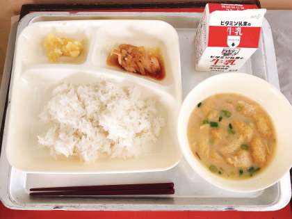 【鶏肉の甘辛焼き、かす汁、くりきんとん、ごはん、牛乳】