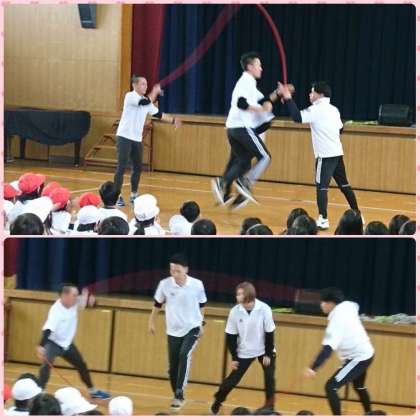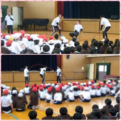 迫力ある技やスピードのパフォーマンスに子どもたちは、釘付けでした。